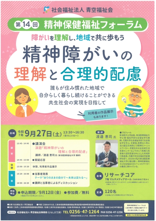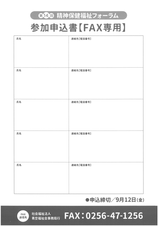 - 申込先 : 社会福祉法人青空福祉会事務局(ともしび工房)TEL:0256-47-1264 FAX:0256-47-1256