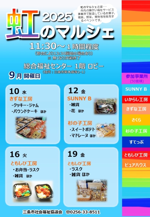 【きずな工房】総合福祉センターにて虹のマルシェに出店します♪