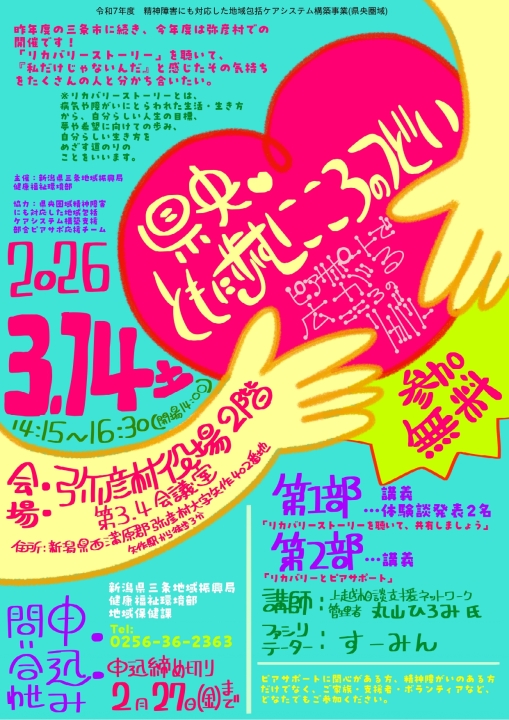 「県央♡ともに歩むこころのつどい~ピアサポートで広がる、こころのリカバリー~」の開催について